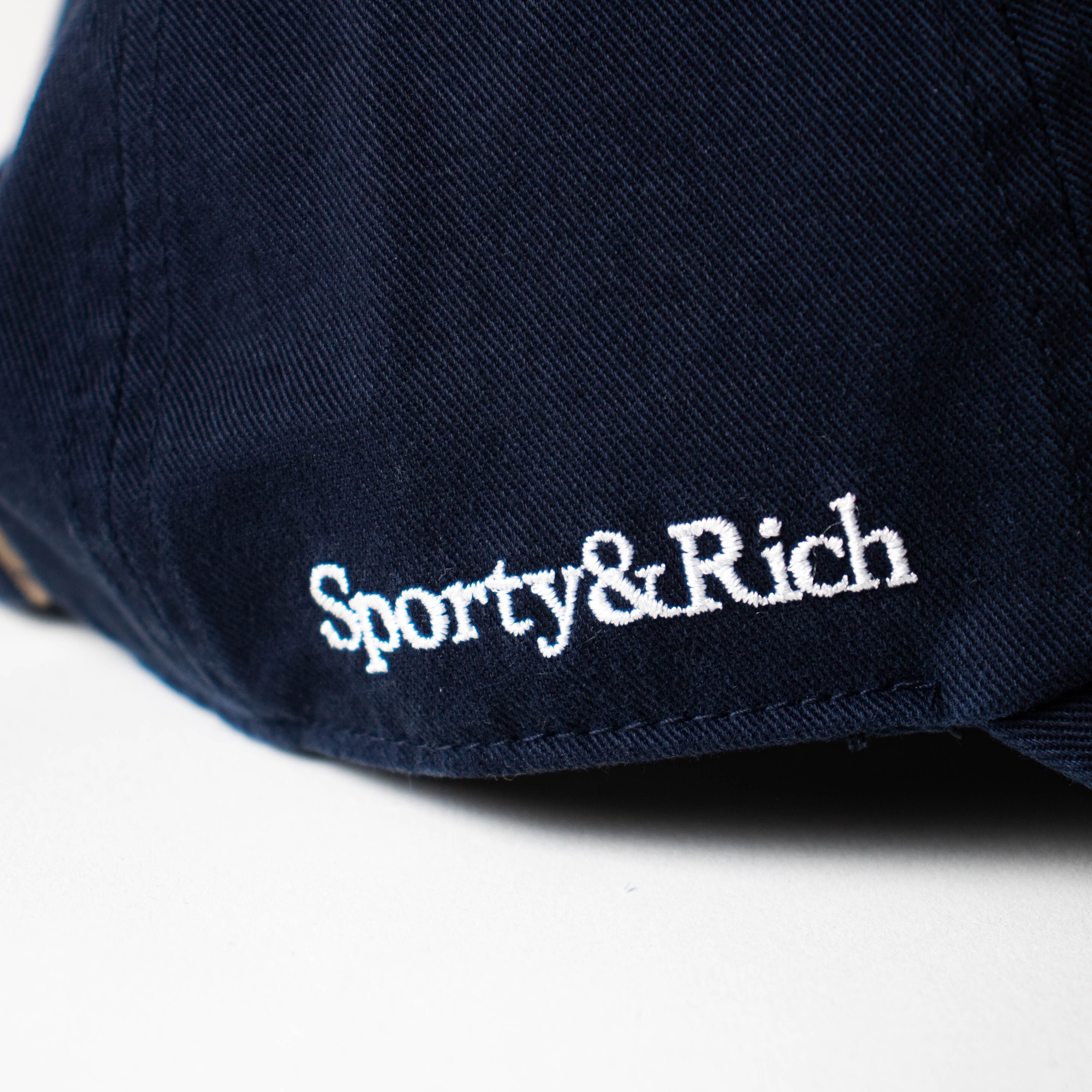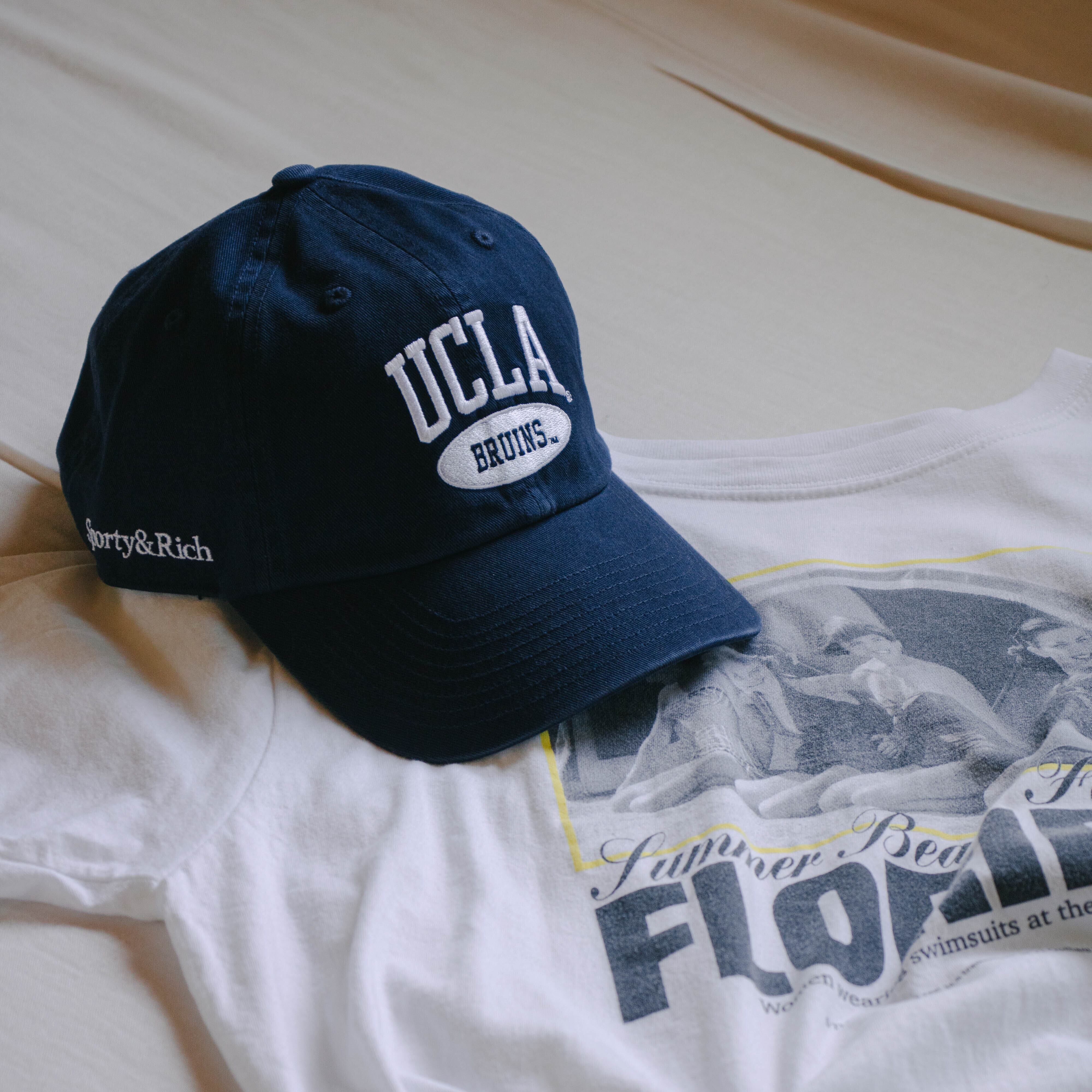アメリカ由来のファッションにおいて欠かすことのできない存在、超名門で知られるカリフォルニア大学ロサンゼルス校「UCLA」とのコラボコレクションで、深いネイビーに大きな刺繍、そしてサイドに「Sporty&Rich」と「'47」のロゴが入る贅沢な仕上がり。